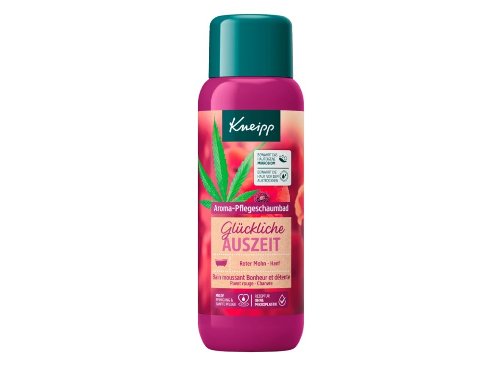 S Kneippovým perličkovým kúpeľom Happy Time Out môžete úžasne vypnúť. Prírodné oleje z červeného maku a konope pomáhajú relaxovať a zároveň vyživovať pokožku. S dlhotrvajúcou penou.
